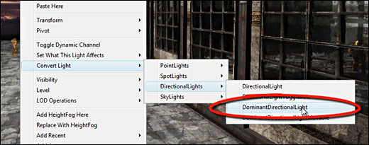 If you already have a PointLight in your level, you can convert that light into a DominantDirectionalLight.
