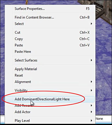 Inside your perspective viewport, Right Click and choose Add DominantDirectionalLight Here.
