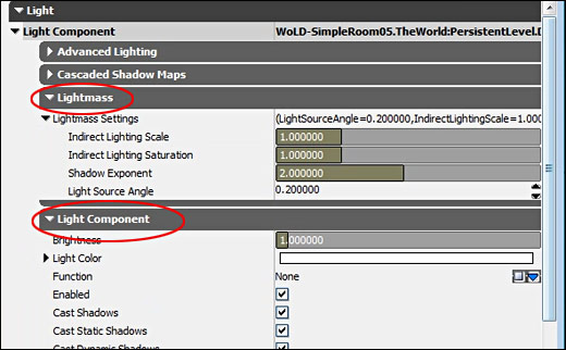 Want you want to pay attention to are Lightmass and Light Component Tabs: