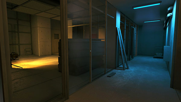 Last level "The Shard" uses primarily a cool color palette consisting of blues.