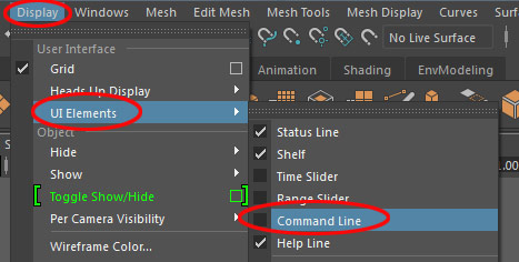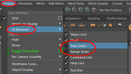 Let's hide these controls to maximize our workable area. Go to Display > UI Elements > Uncheck Time Slider and Range Slider: