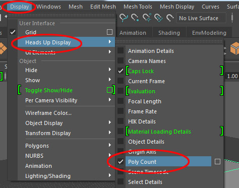 But if you don't then go to Display > Heads Up Display > Poly Count: