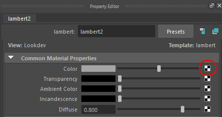 Step 1: in Hypershade select your Material. Go to Property Editor, locate the Color attribute and click the checkerboard icon next to it: