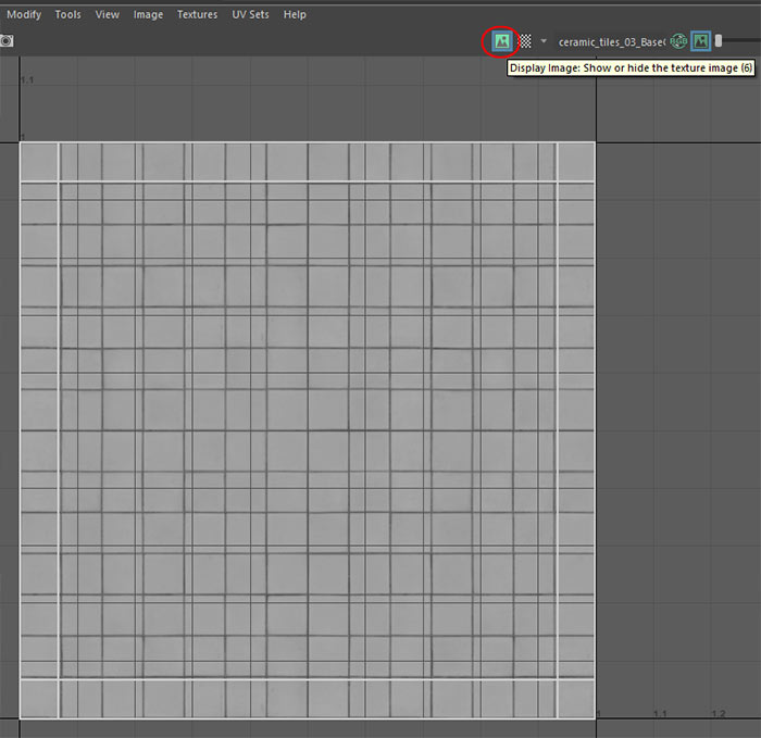 In UV Editor: press 6 to display the texture in the 0-1 UV space. Alternatively, click the Toggle Image Display icon in the UV Editor toolbar: