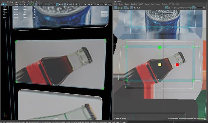 Now begin to work with your UVs (edges, faces, shells or UVs) to adjust their position, aligning them with specific texture details and seeing the update in perspective viewport in real-time.