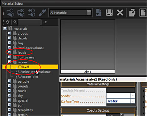MATERIAL EDITOR PROPERTIES FOR THE RIVER