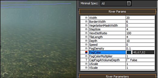 Modifying various properties and see how it effects the visual quality of the river in the environment.