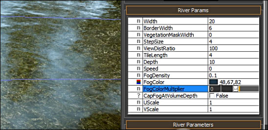 At this point you may set various properties. Select the river and in the RollupBar of the river you will find River Params. Some properties to start with:
