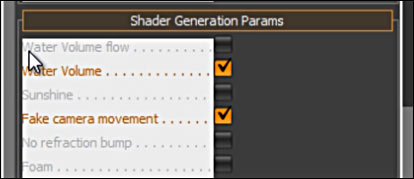 Material Editor will open and for the material you selected for the river you will find Shader Params and Shader Generation Params.