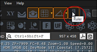 Left click to place first Ruler point and left click again to place a second Ruler point. This will calculate the distance between these two points and give you a value in meters.
