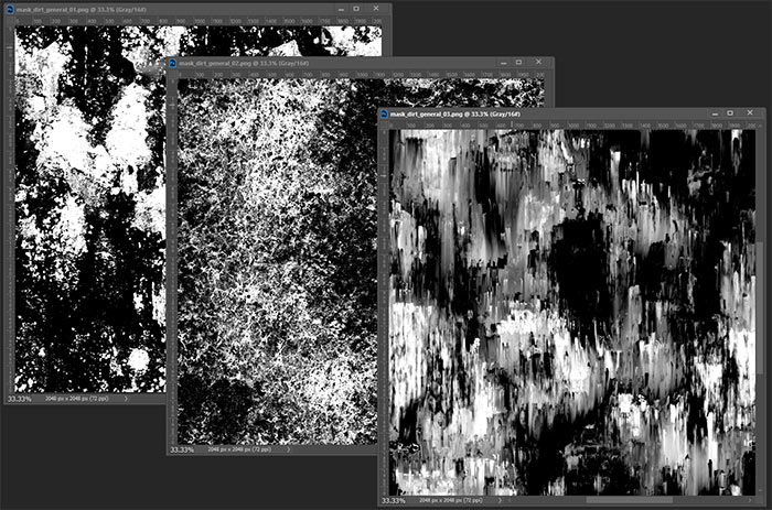 Here are the 3 texture masks I will be using to pack into a single texture: