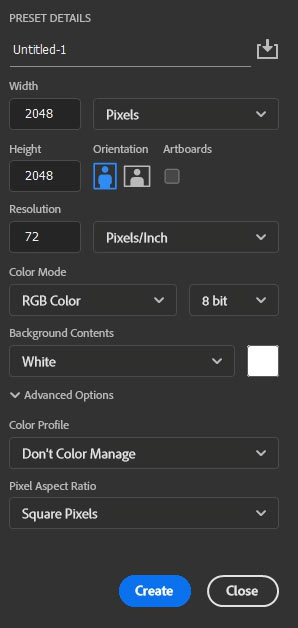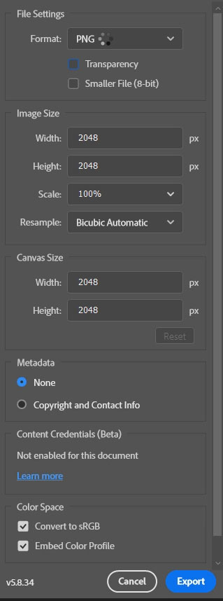 Open all three textures in Photoshop to check their dimensions. Go to Image > Image Size for each one. In this example, the textures are 2K (2048 × 2048 pixels).