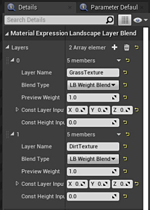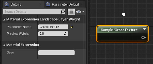 Parameter name has to be the same name as one of the texture layers in the Layer Blend node. In my case I will start with GrassTexture: