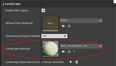 Back in the Material Editor, Right-Click in empty space and insert LandscapeGrassOutput node: