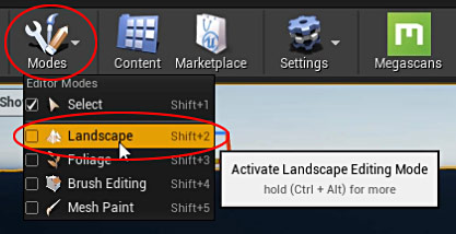 Switch to Landscape Mode (Shift + 3 if using UE4.25 or later; Shift + 2 if using UE4.24 and earlier):