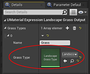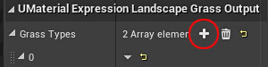 Back in the Material Editor, select the Grass Output Node and create a second element by clicking on the Plus icon in Details panel: