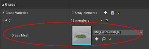 Then go through the properties just like we did for the grass mesh and add another Static Mesh to spawn. Except lower the Grass Density to a very low amount.