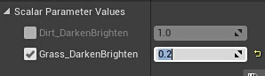 Then using the Material Instance, enable Brighten/Darken controls and lower the value below 1. I changed mine to about .2