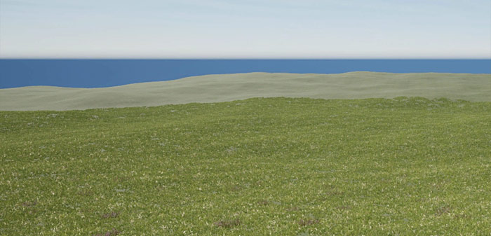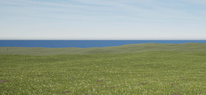 You can now see the terrain texture under the grass blends and matches the Static Mesh much better: