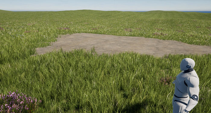Be aware that Grass Output Node does NOT have mesh collisions. So for gameplay related foliage requiring collision use the Foliage Painting Tool or Procedural Foliage Volumes.