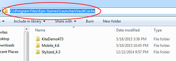 Download project example files that you see inside Vault section are stored in "C:\Program Files \Epic Games \Launcher \VaultCache":