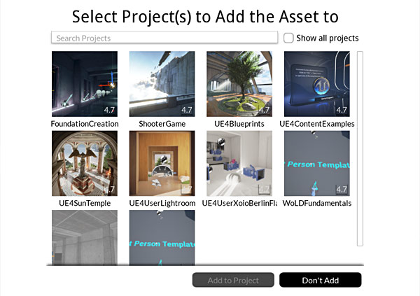 If you happen to download assets such as static meshes, sounds or materials you won't creating a project from these. You can add these into a project you already have created and are working on.
