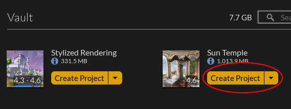 Anytime you download any of the project examples from the Learn Section or Marketplace Section, you will find these files inside Library > Vault Section.