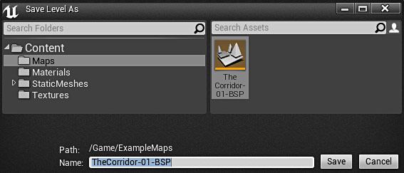 I save this map as ‘TheCorridor-01-BSP':