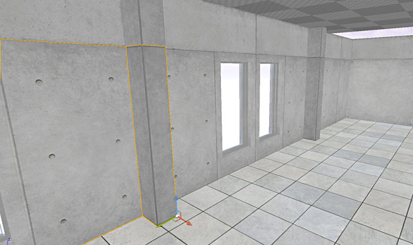 Once the floor and stair have been added and align to each other, I move on to the walls, windows and column: