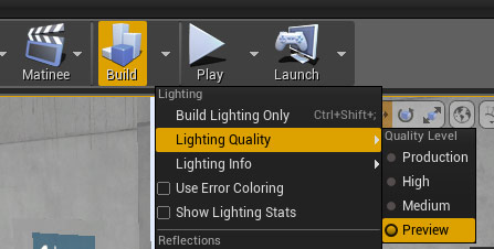 Once I am happy with the changes via World Settings, I build on Production lighting quality: