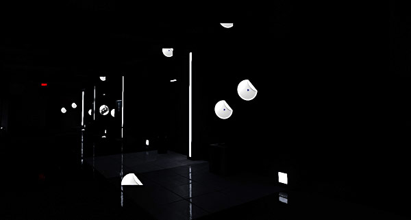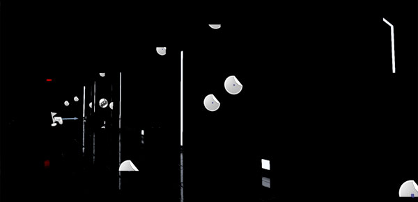 I now have a completely dark scene, with the exception of light strips. These are self-illuminated lights that use emissive material property: