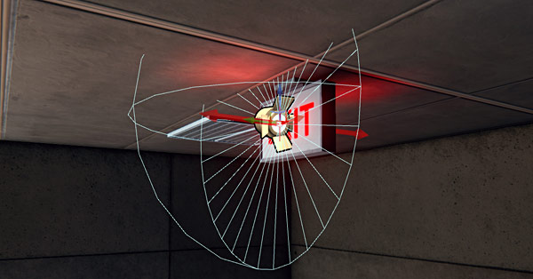 I insert Point Lights to provide better control of how the corridor is lit. The secondary Point Lights are placed inside the corridor: