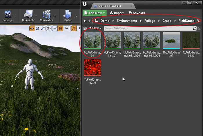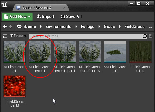 Open up the Material Instance M_FieldGrass_Inst_01: