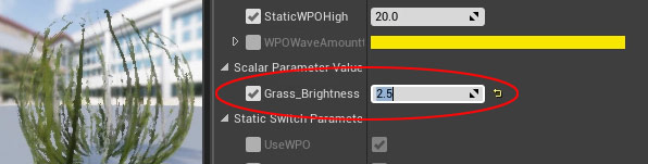 Except the Field Grass is too dark and there is no way to adjust the Brightness within the Material Instance.