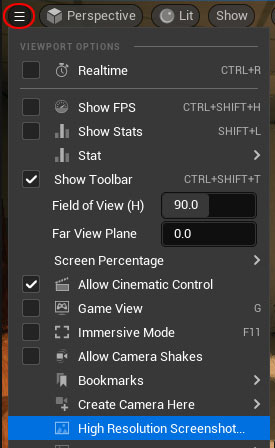 Position your view or camera inside your environment and either use Print Screen, take a screenshot with F9 shortcut or se High-Res Screenshot tool: