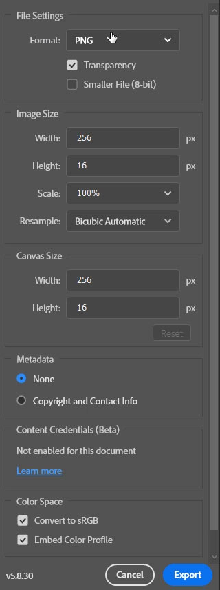 The LUT image will now have all the adjustments applied to it. Next is to save this PNG image as new LUT.