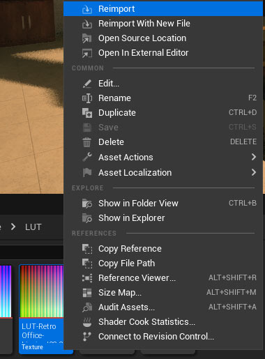 Import the LUT image into UE5 by left-click and drag right into the Content Browser.