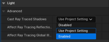 This applies Ray Trace shadows across the project, ensuring consistent behavior for all Directional Lights.