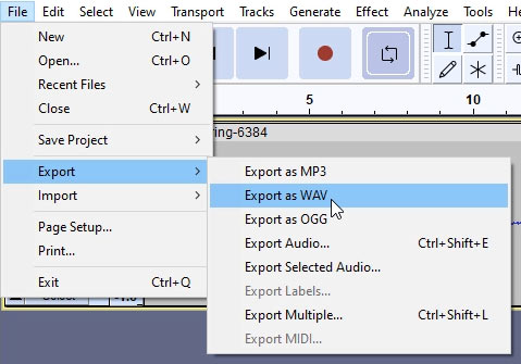 Note: looping timeline only defines the looping region inside Audacity but when you export, the entire timeline is exported not the predefined looping regions.