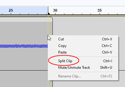 Hover over the placed Yellow Line, Right Click and choose Split Clip (Ctrl + I):