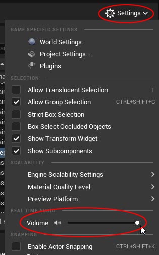 To hear the Sound inside your level, go to Settings and enable Volume: