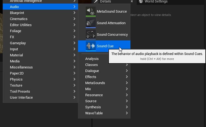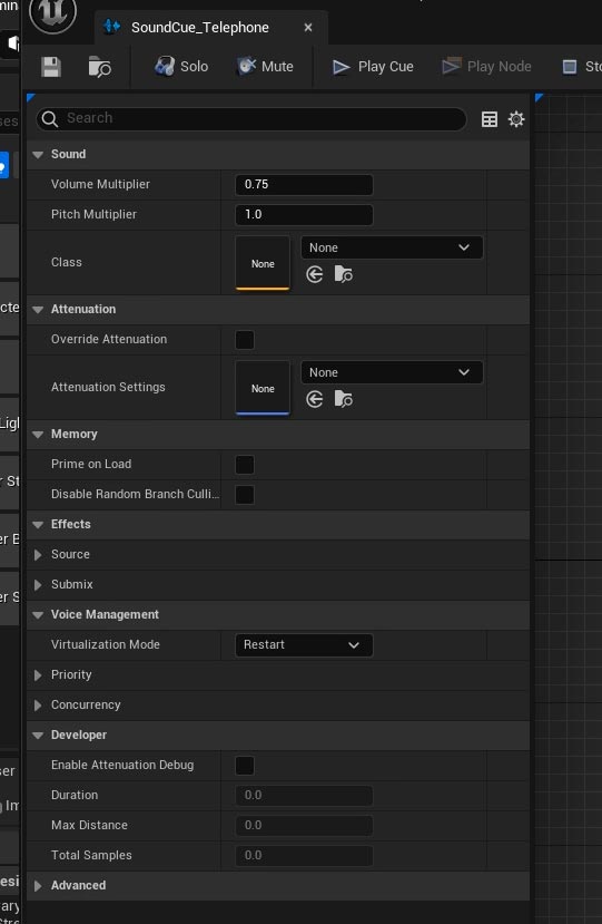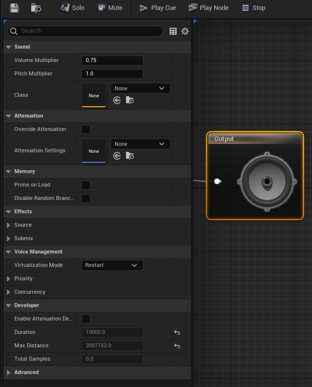 Use the Details Panel to control various properties for where and how this Sound Cue will play: