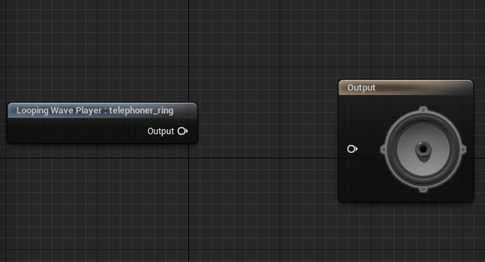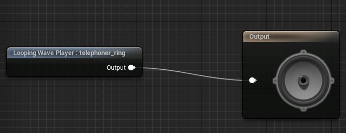 Drag the Sound Wav file output and connect it to Sound Cue Output: