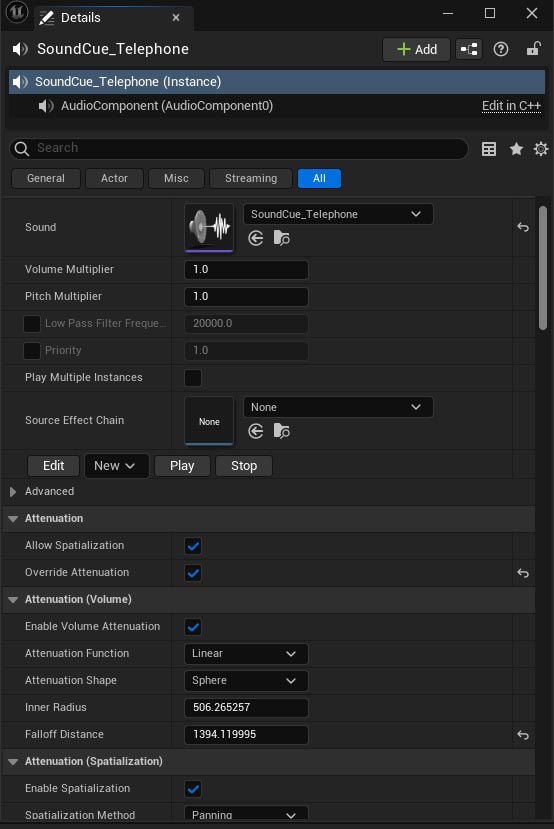 But you can also control many of these properties in the Details Panel of that Sound Cue once it's inserted into the level.