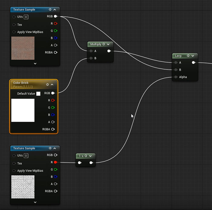 You now have the first setup for controlling one part of the texture through a mask, in my case it is the brick color: