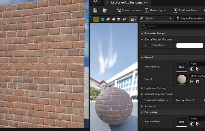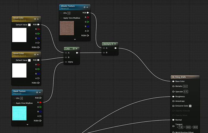 As an example: a brick wall where you'll need to adjust the brick and the grout separately but this can be done with any surface type.