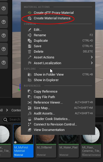 Inside the Content Browser, find the Material you created that you want to have Material Instances created from.