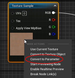 Right-click on the Base Color texture sample node the node and select Convert to Parameter then name it such as Base Color: