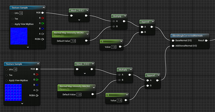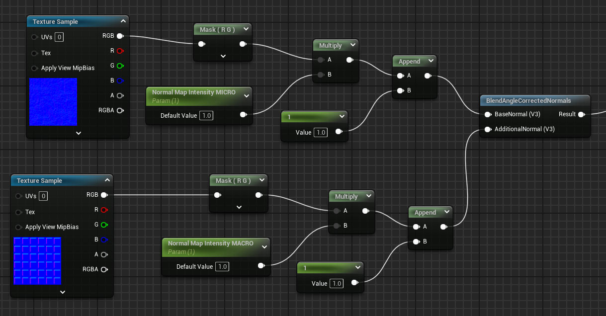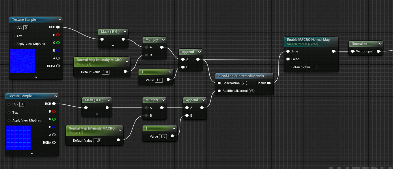 You've now created a flexible UE5 material that blends 2 Normal Maps, allowing you for individual intensity control and includes a Static Switch to toggle the second Normal Map.