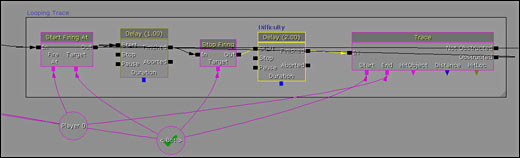 5. All that's left to do now is comment your sequences and create Sub-Sequences. The new Death sequence needs commenting, in this example I have named it WhenJohnnyDies. I have also created sub-sequences for the Trace and Movement setups. To do this Select all your nodes in the Trace sequence (Ctrl+Alt) then right click - Create new Sub-Sequence. Because you have an input into the beginning of the Sequence it will create a tab that hooks up to the Finished of the Actor Factory. It is perfectly acceptable to leave the naming as Auto0, however if you wish to change this default value, double click on the Sub-Sequence and select the Sequence Activated event and change the Input Label to 'Trace'. You can do the same with the Bot Movement sequence as well.